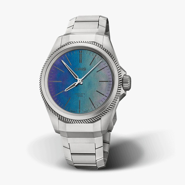 The ProPilot X Calibre 400 Laser features a 39mm titanium case and bracelet, both powered by our revolutionary automatic Calibre 400 with a five-day power reserve. But the true innovation this time lies in its colorful dial, created using a futuristic laser technique never before seen in watchmaking. Incredibly, it doesn't even contain a drop of colored pigment. The blue, green, and purple reflections are generated by the refraction of light. It's a technological marvel.