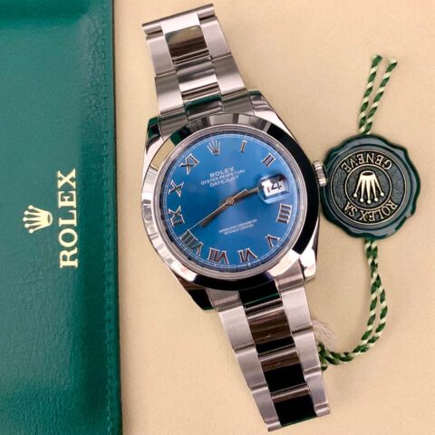 ROLEX DATEJUST BLUE 41mm REFERENCE no.: 126300 - MOVEMENT: Perpetual, mechanical, self-winding - DIAMETER: 41 mm - BRACELET: Original Rolex Oyster steel - DIAL: Blue - CASE: Steel - YEAR: Feb 2024 BRACCO 12-MONTH WARRANTY EXCELLENT CONDITION - LIKE NEW - VALID ORIGINAL ROLEX WARRANTY - ROLEX BOX included.